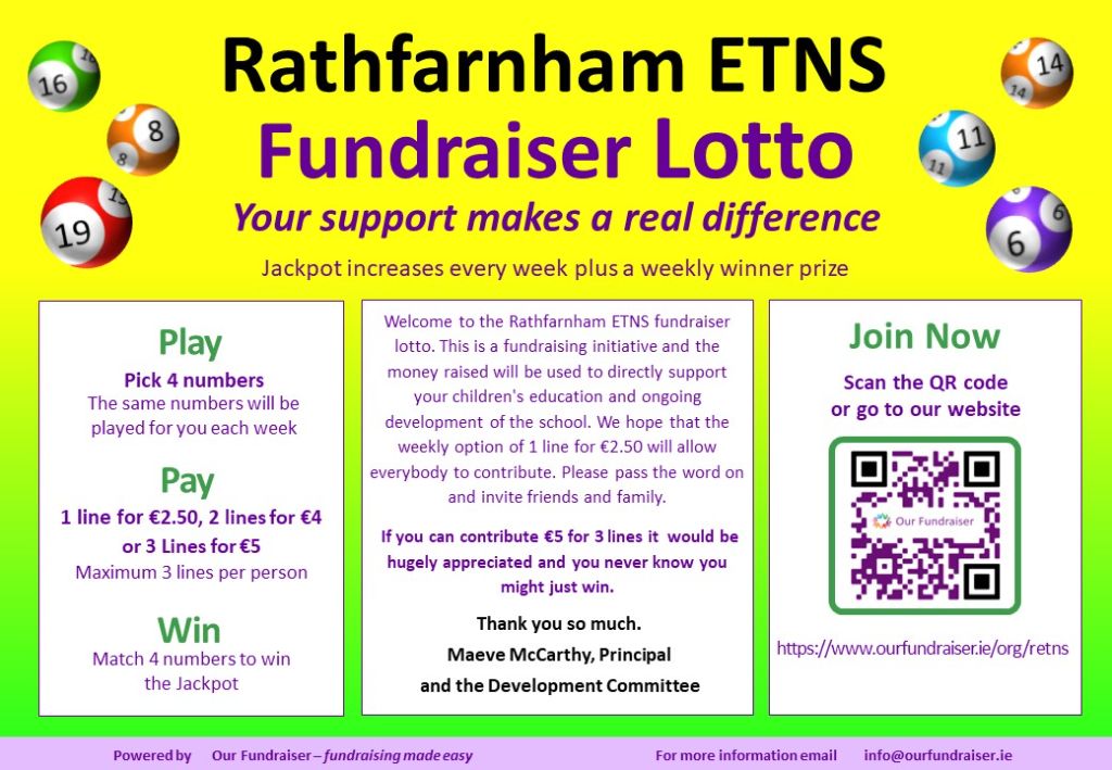 The RETNS Development Committee supports the co-ordinated fundraising of the school community and reviews development ideas for the school. Funds raised from this Lotto will go towards your children’s education and the ongoing development of the school.
